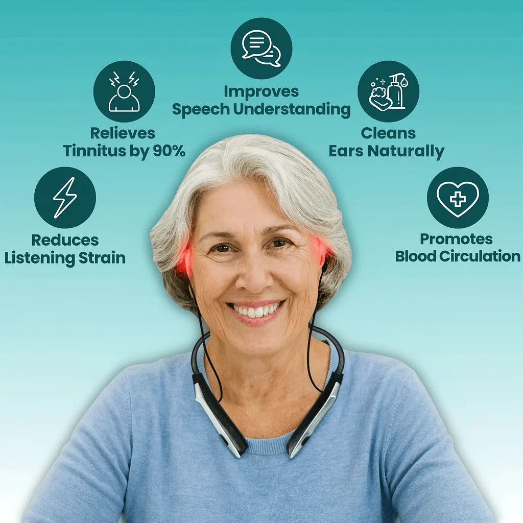 Just 20 minutes of daily use over four weeks can noticeably improve hearing and protect it in the long term. Targeted 650 nm red light therapy promotes blood circulation, stimulates the regeneration of damaged hair cells, which are responsible for converting sound into nerve impulses, and supports the natural self-cleaning process of the inner ear to remove deposits that can impair hearing.