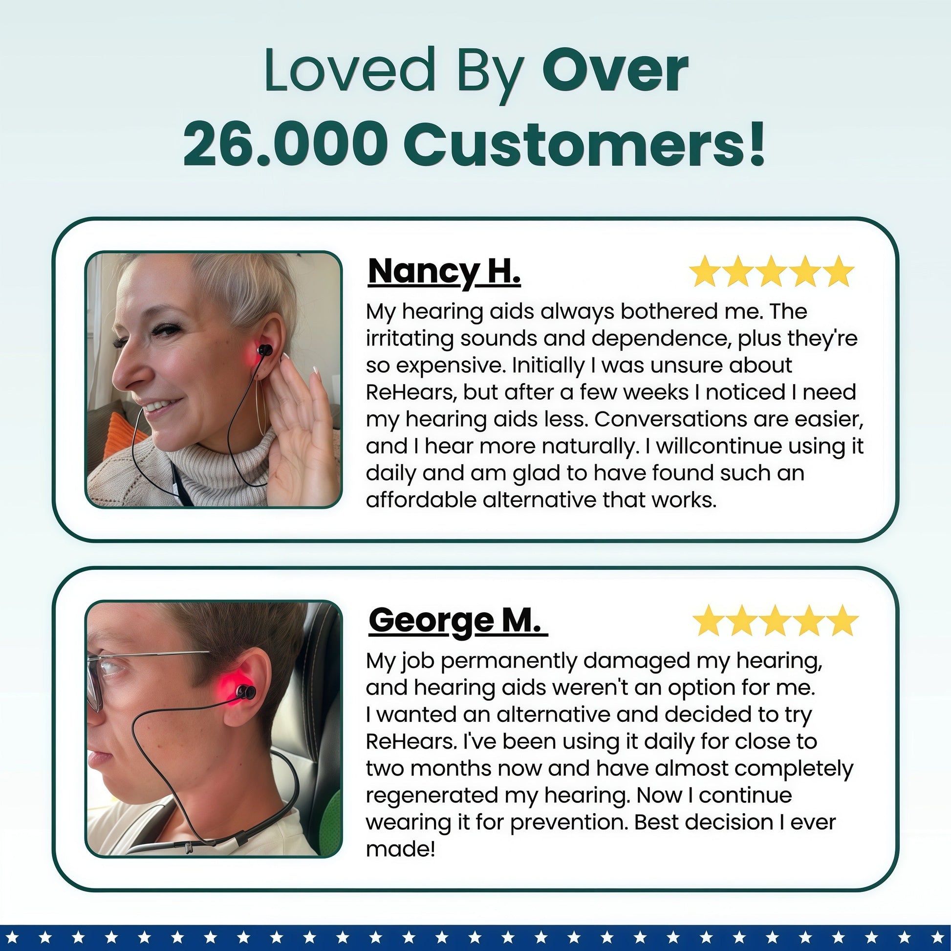 With ReHears, you invest just $119.95 in your hearing. No ongoing expenses, no uncomfortable pressure points, just the feeling of finally being able to hear effortlessly and naturally again.